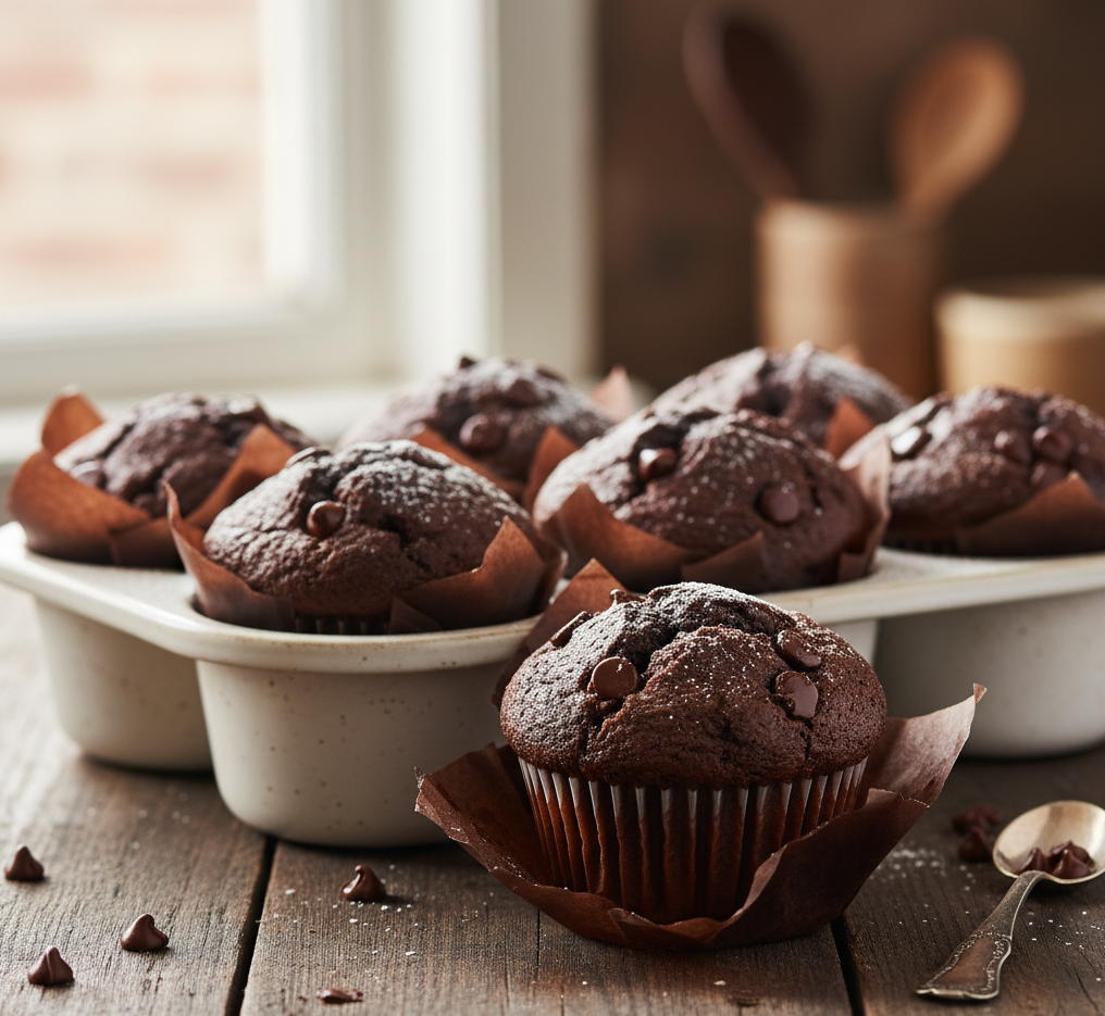 - Lasciar raffreddare i muffin al cioccolato prima di toglierli dagli stampini e servirli